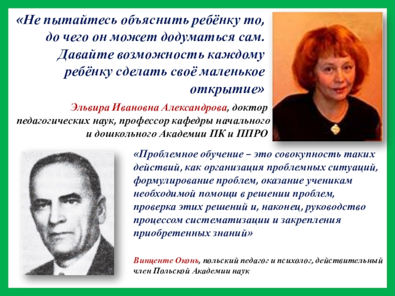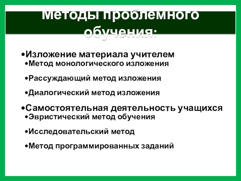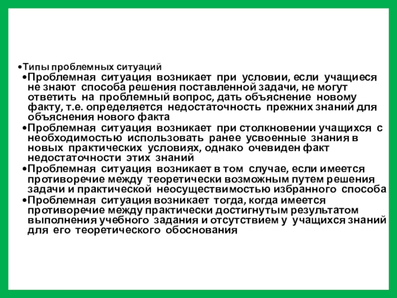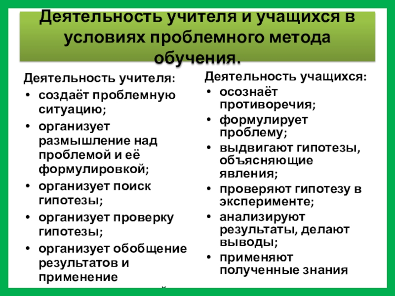 «Проблемное обучение – это совокупность таких действий, как организация проблемных ситуаций, формулирование проблем, оказание ученикам необходимой помощи в решении проблем, проверка этих решений и, наконец, руководство процессом систематизации и закрепления приобретенных знаний»