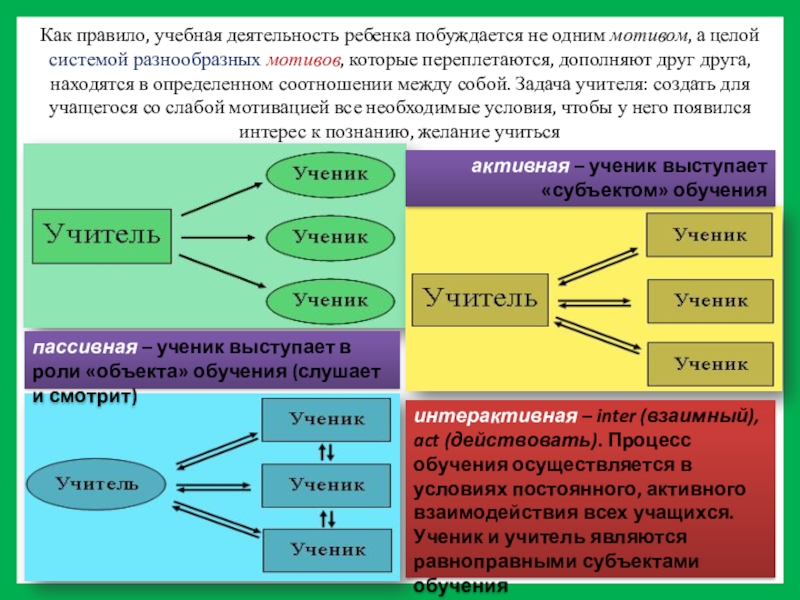 активная – ученик выступает «субъектом» обучения