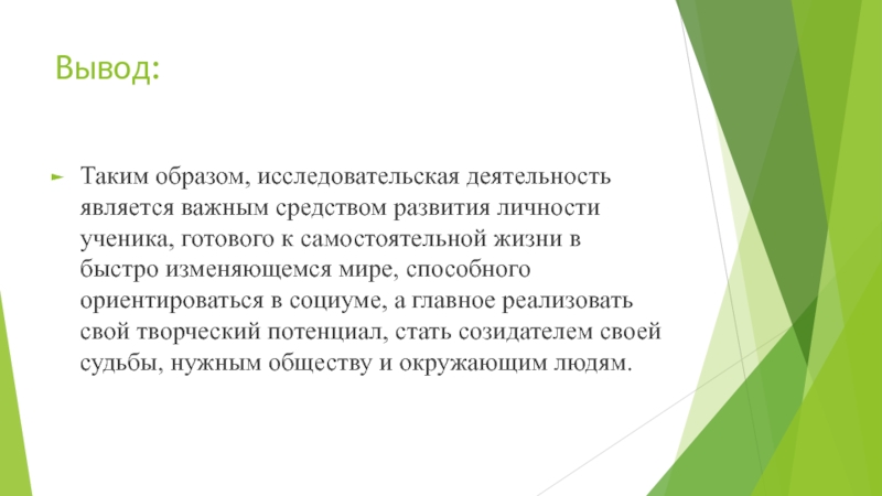 Таким образом, исследовательская деятельность является важным средством развития личности ученика, готового