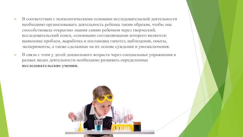 Слайд 12В соответствии с психологическими основами исследовательской деятельности необходимо организовывать деятельность ребенка
