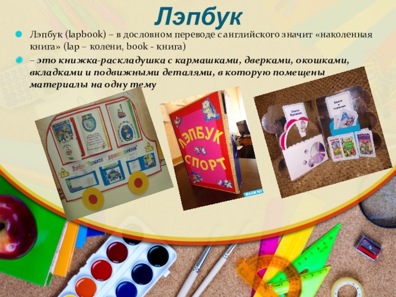 ЛэпбукЛэпбук (lapbook) – в дословном переводе с английского значит «наколенная книга» (lap – колени, book - книга)–