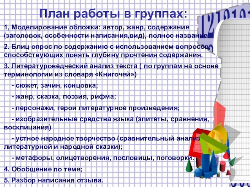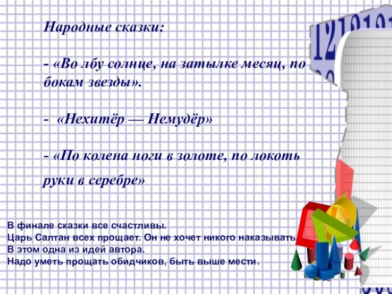 - выявить сходство и различие авторских и народных сказок (Сопоставление народной сказки с литературной сказкой);