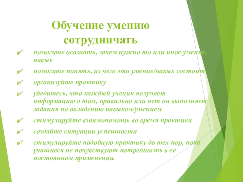Слайд 12Обучение умению сотрудничать