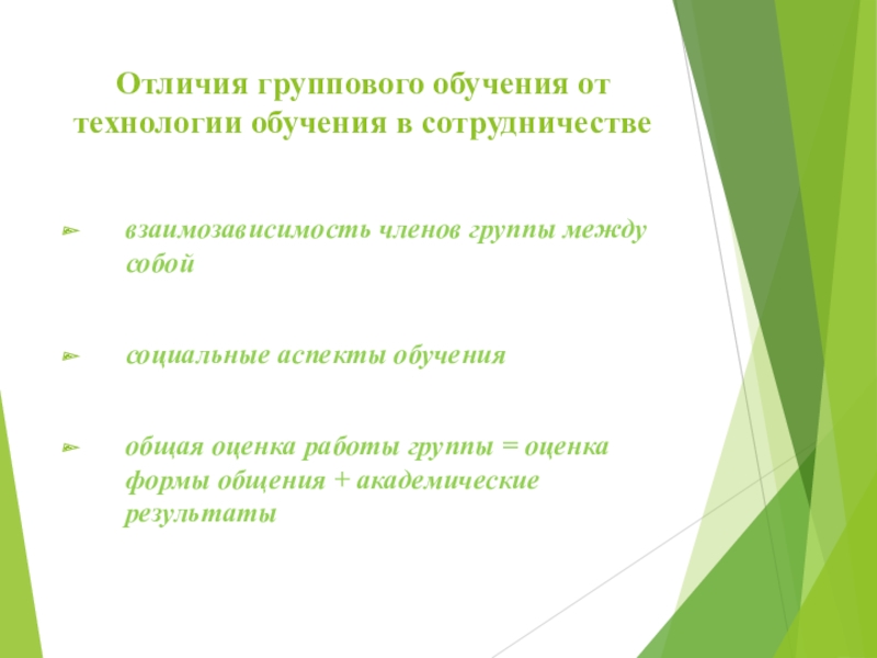 Слайд 11Отличия группового обучения от технологии обучения в сотрудничестве