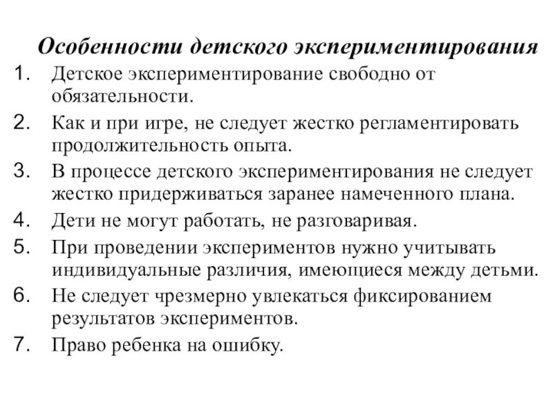 Детское экспериментирование свободно от обязательности.