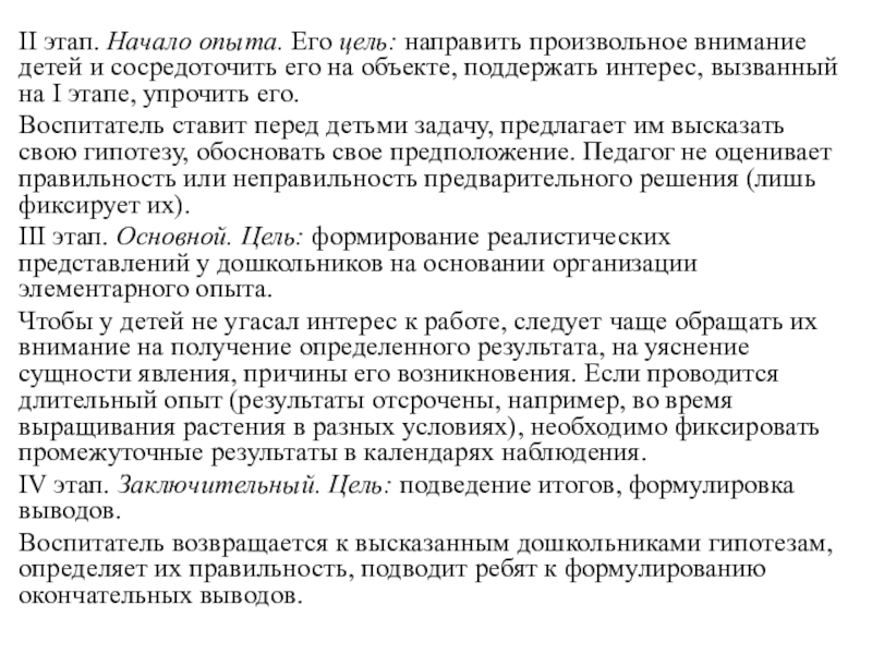 Слайд 10II этап. Начало опыта. Его цель: направить произвольное внимание детей и