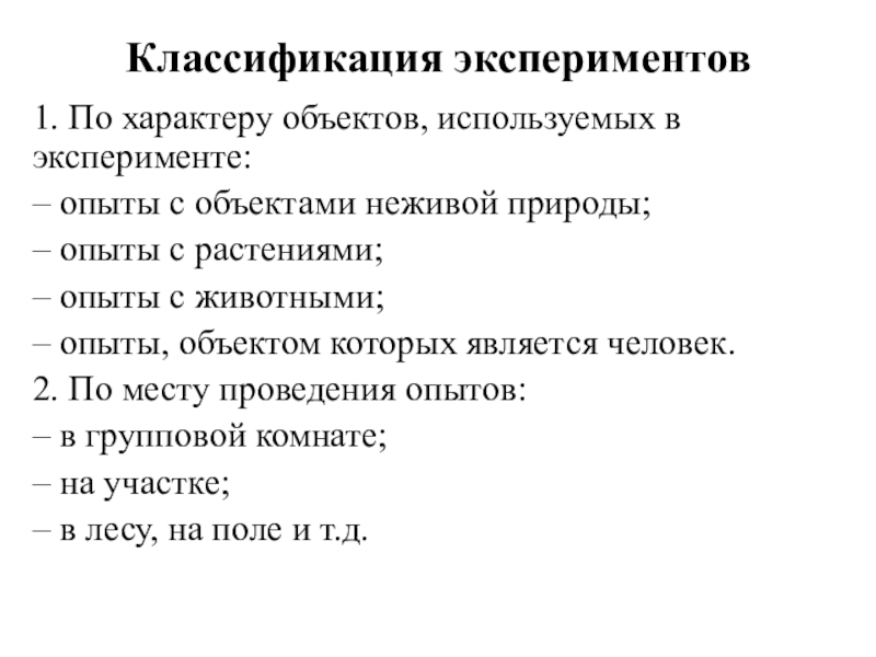 1. По характеру объектов, используемых в эксперименте: