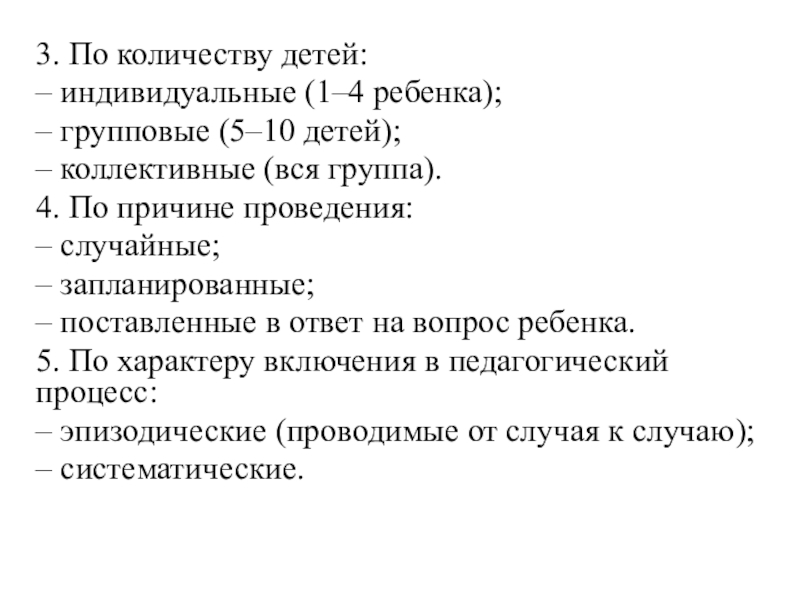 – индивидуальные (1–4 ребенка);