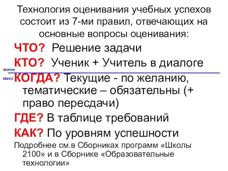 Подробнее см.в Сборниках программ «Школы 2100» и в Сборнике «Образовательные технологии»