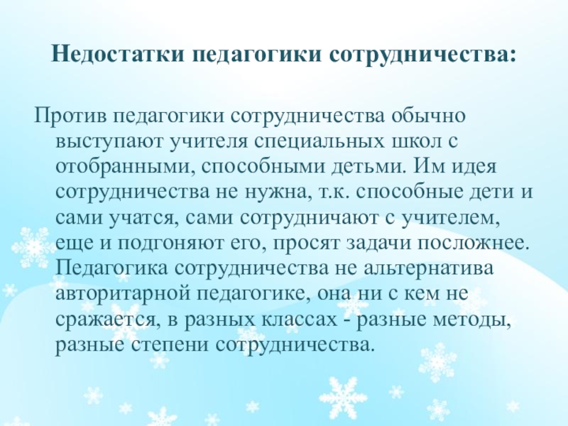 Против педагогики сотрудничества обычно выступают учителя специальных школ с
