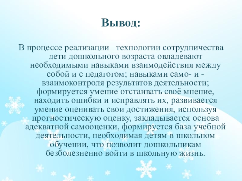 В процессе реализации технологии сотрудничества дети дошкольного возраста овладевают необходимыми навыками