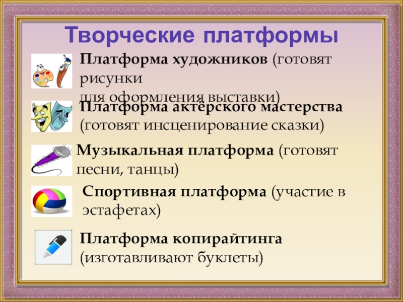 Это сайт презентаций, где можно хранить и обмениваться своими презентациями, докладами, проектами, шаблонами в формате PowerPoint с другими пользователями. Мы помогаем школьникам, студентам, учителям, преподавателям хранить и обмениваться учебными материалами.