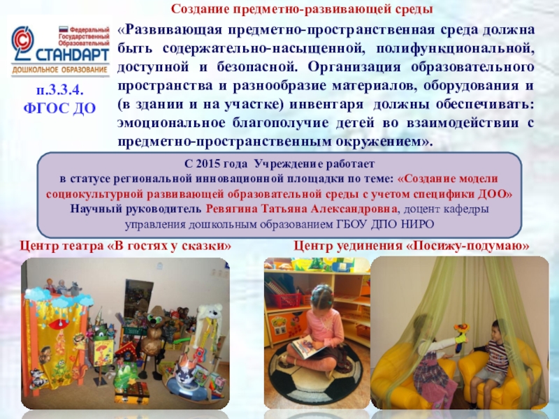 в статусе региональной инновационной площадки по теме: «Создание модели социокультурной развивающей образовательной среды с учетом специфики ДОО»