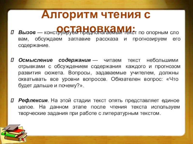 это условное название методической стратегии по организации чтения текста
