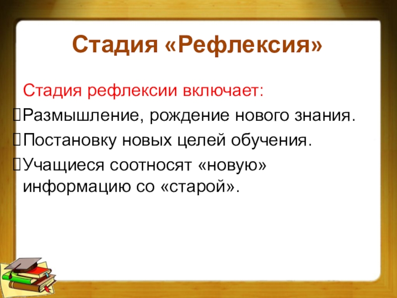 На стадии рефлексии — интеграция новых и предыдущих знаний.