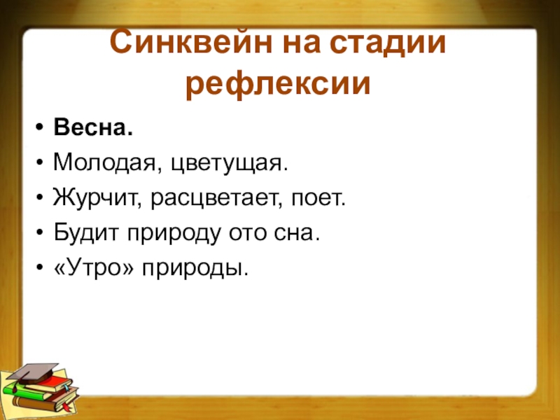 Слайд 40Синквейн на стадии рефлексии