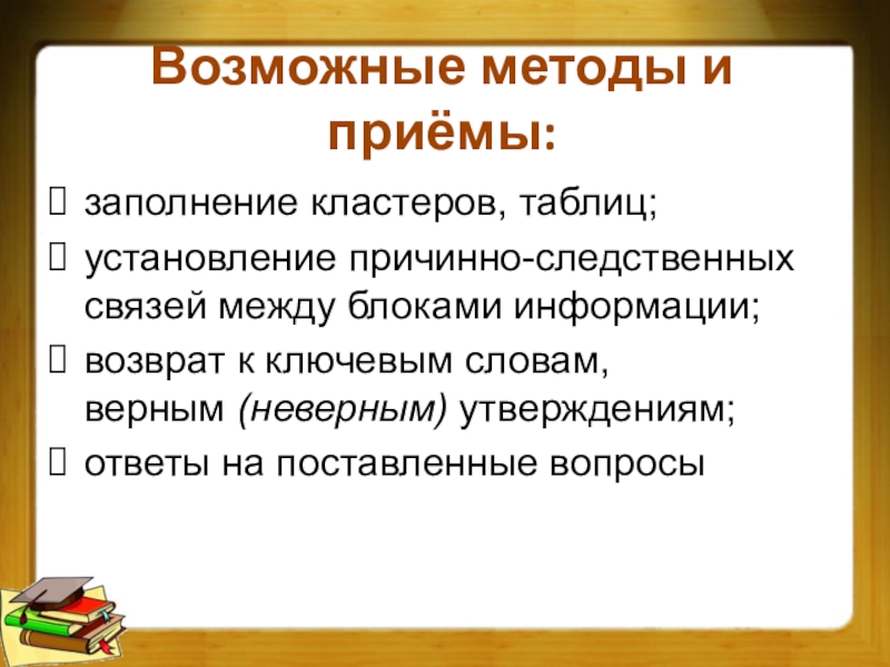 Слайд 15Возможные методы и приёмы: