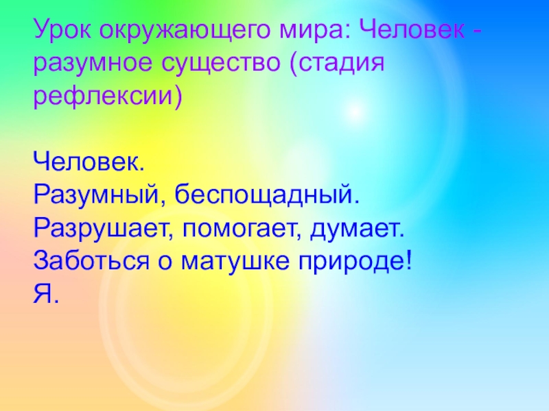 Урок окружающего мира: Человек - разумное существо (стадия рефлексии)