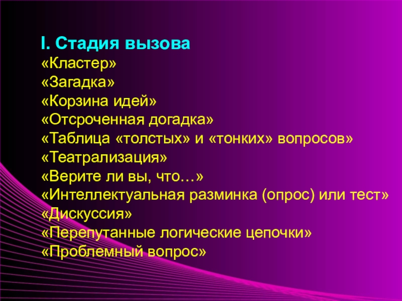 Слайд 8I. Стадия вызова