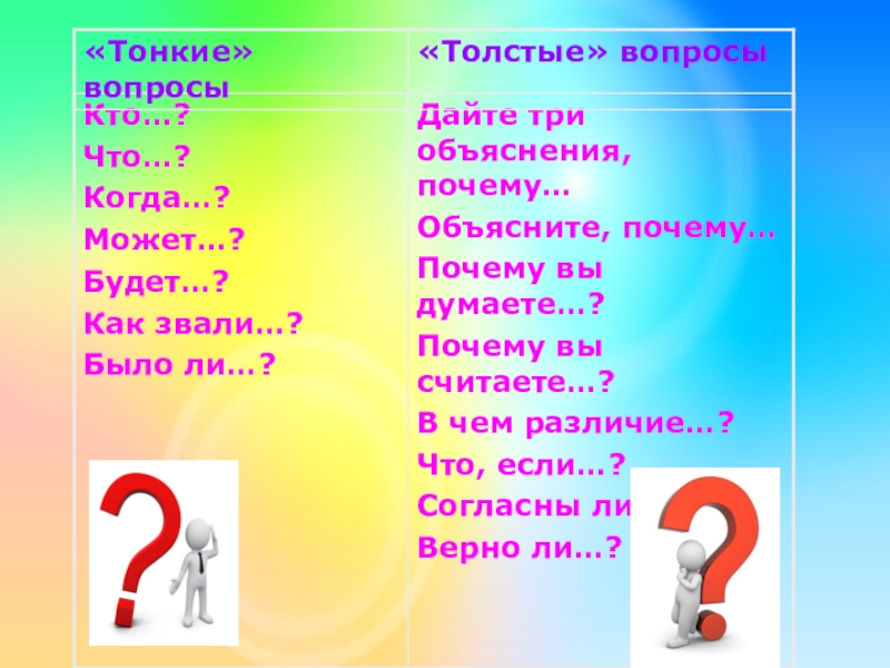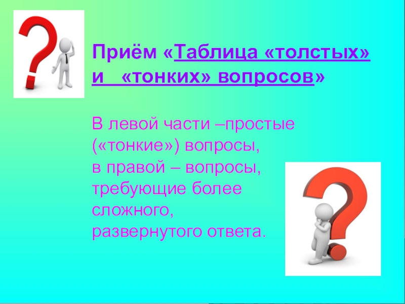 «Таблица «толстых» и «тонких» вопросов»