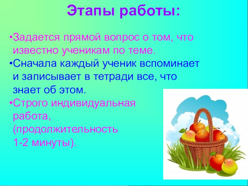 Сначала каждый ученик вспоминает и записывает в тетради все, что знает об этом.