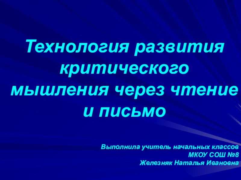 Слайд 1Технология развития критического мышления через чтение и письмо