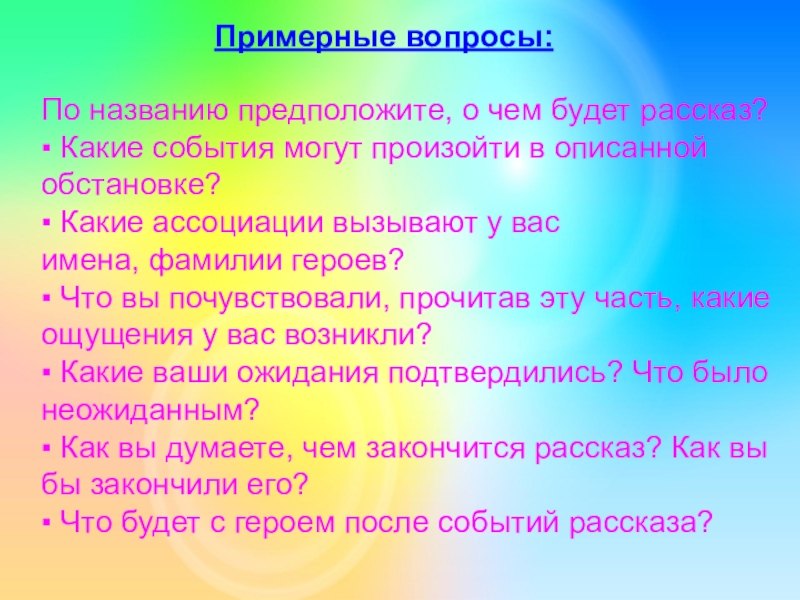 Примерные вопросы: