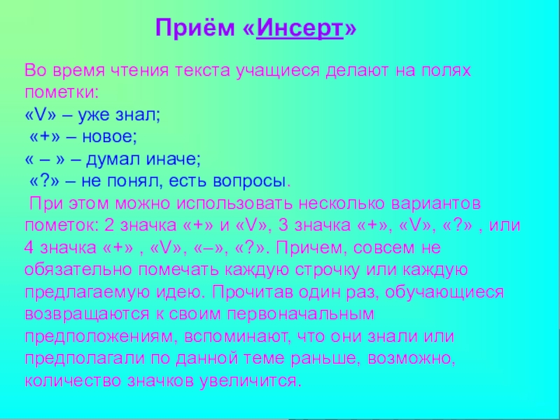 Слайд 33Приём «Инсерт»