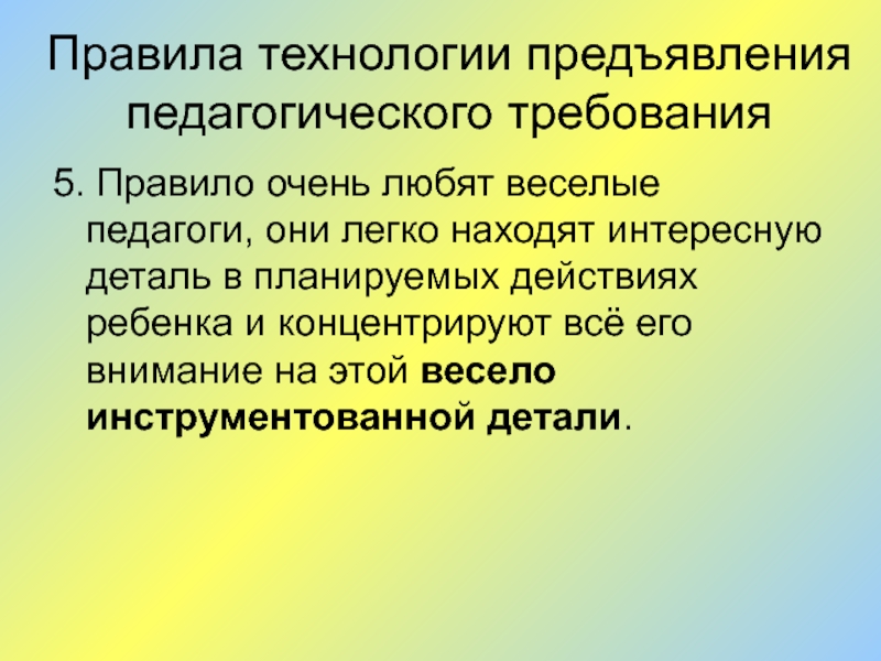 Слайд 5Правила технологии предъявления педагогического требования