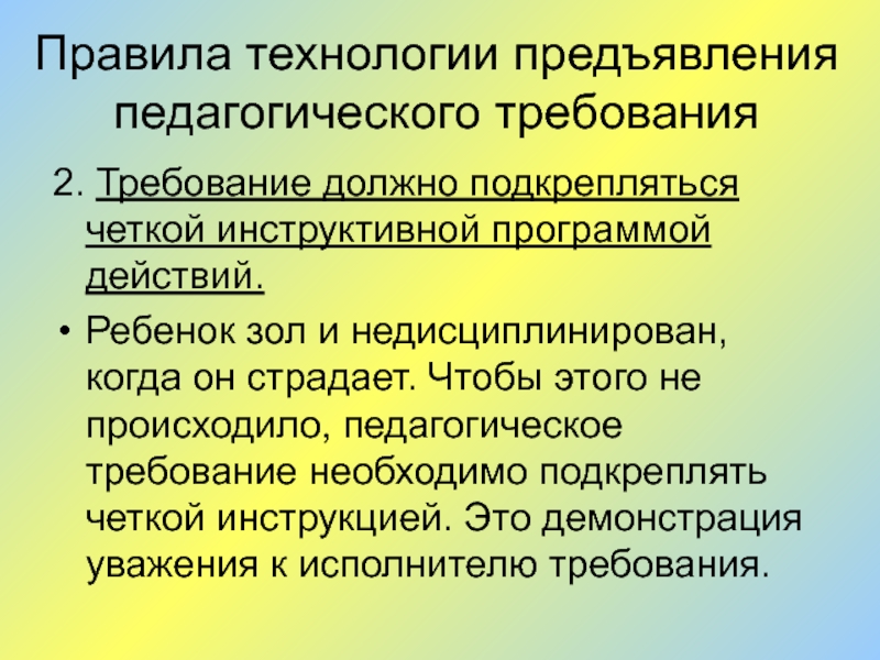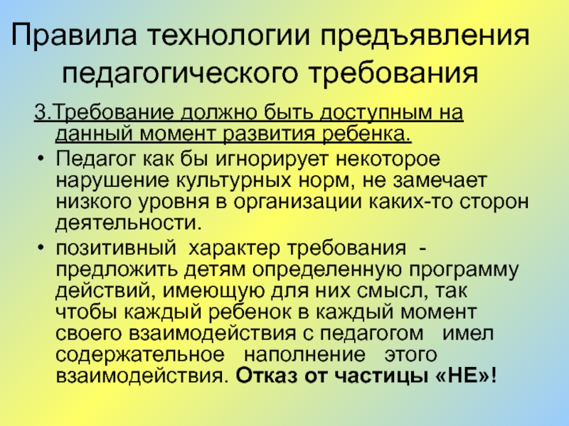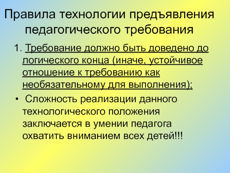 Слайд 3Правила технологии предъявления педагогического требования