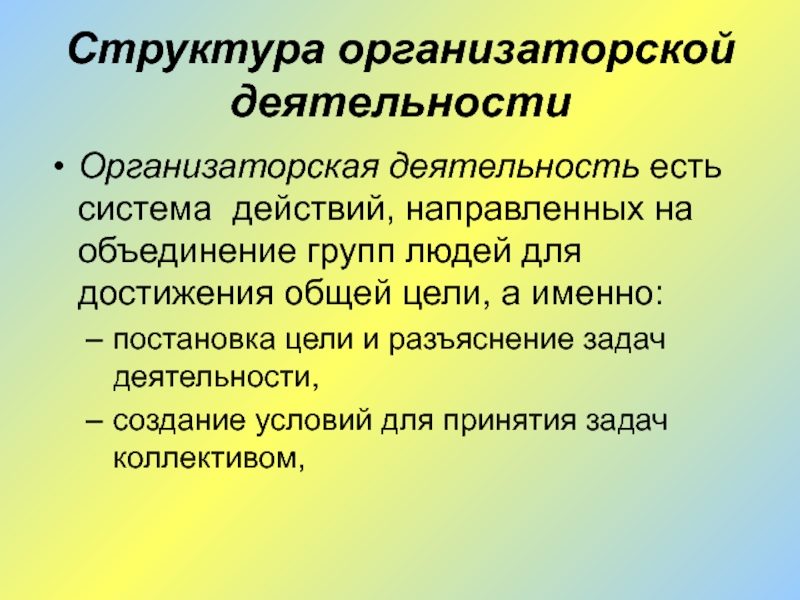 Организаторская деятельность есть система действий, направленных на объединение
