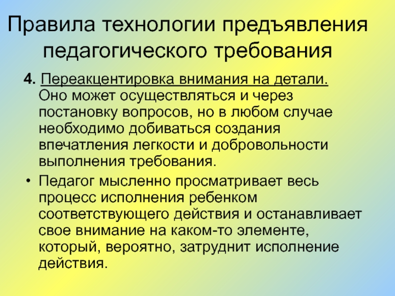 Слайд 4Правила технологии предъявления педагогического требования