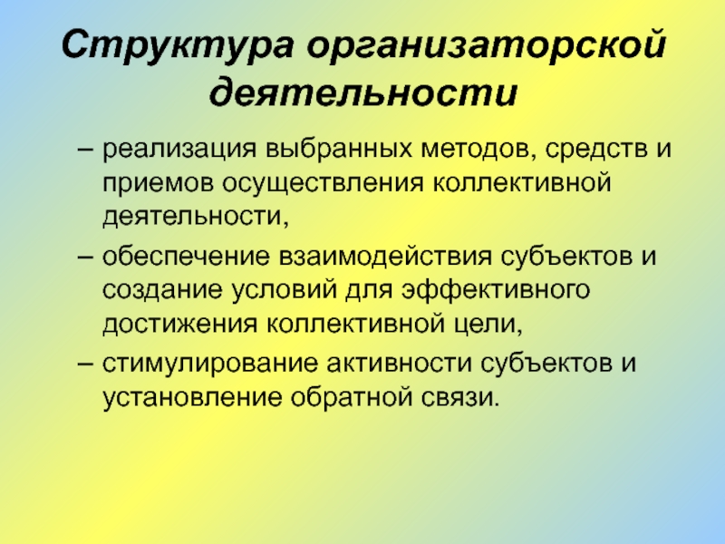 Слайд 21Структура организаторской деятельности