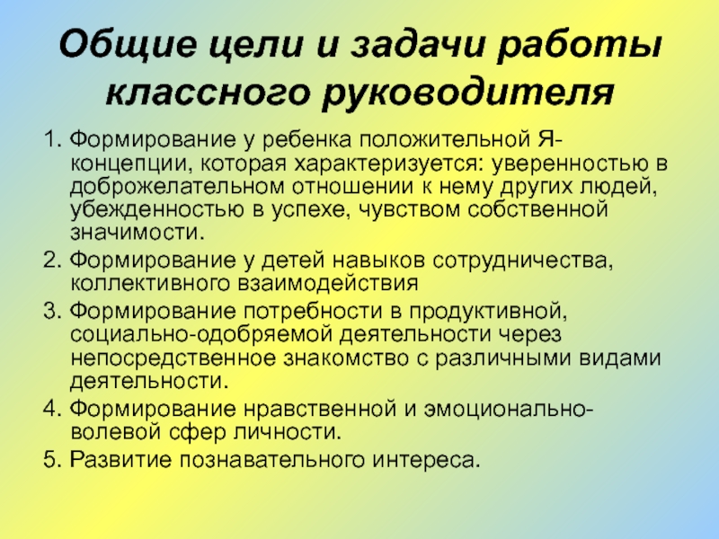 Слайд 17Общие цели и задачи работы классного руководителя