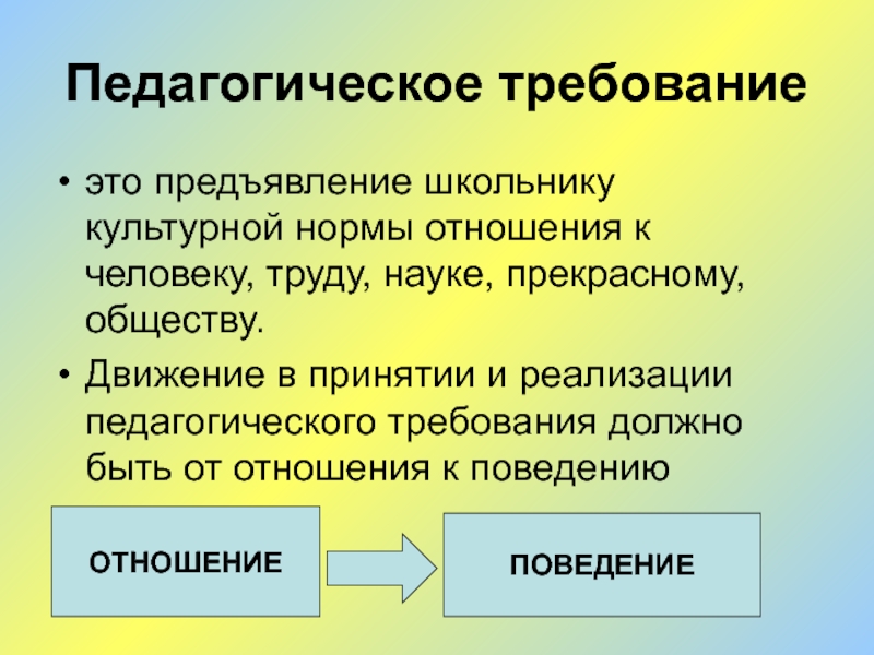 Движение в принятии и реализации педагогического требования должно быть от отношения к поведению