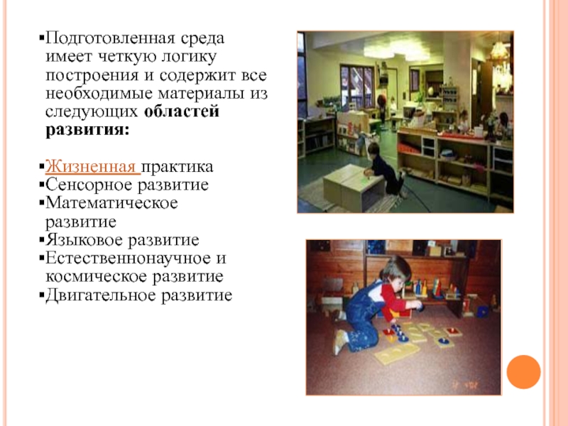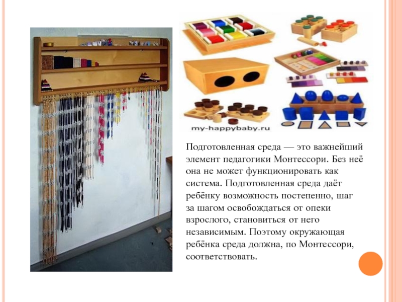 Слайд 7Подготовленная среда — это важнейший элемент педагогики Монтессори. Без неё она не