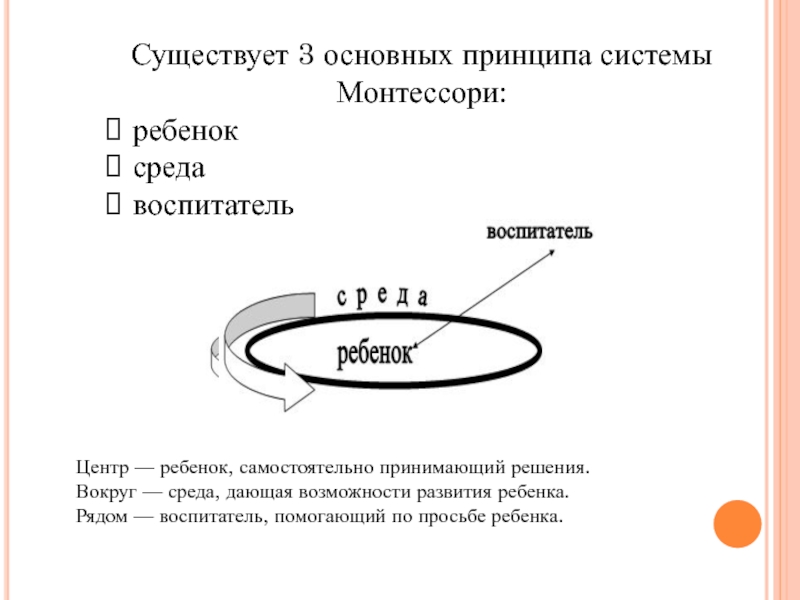 Слайд 9Существует 3 основных принципа системы Монтессори: