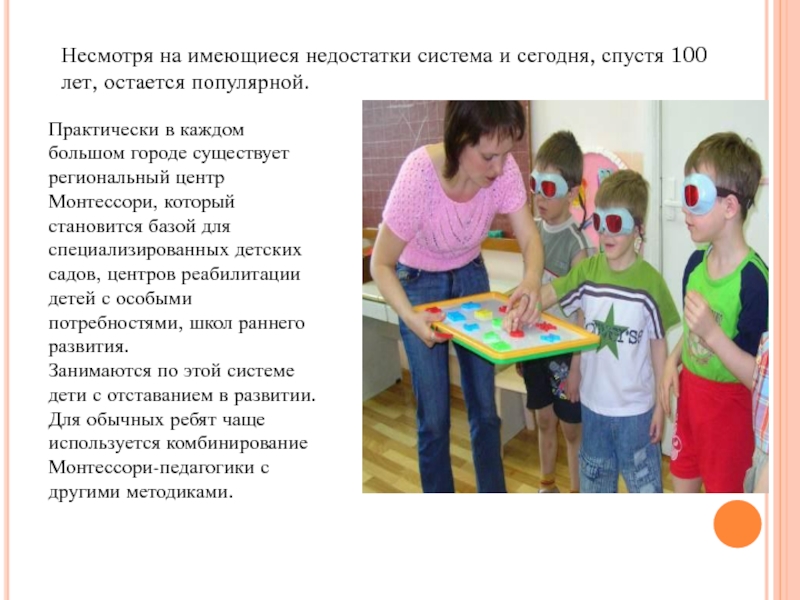 Для обычных ребят чаще используется комбинирование Монтессори-педагогики с другими методиками.