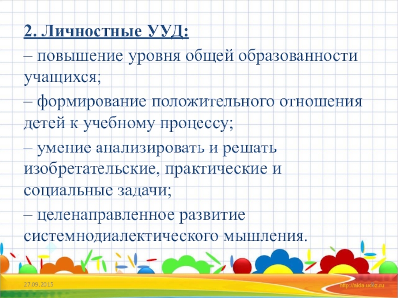 Слайд 2 «Учение не должно сводиться к беспрерывному накоплению знаний, к тренировке