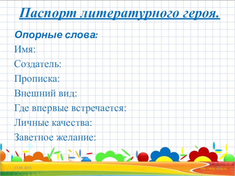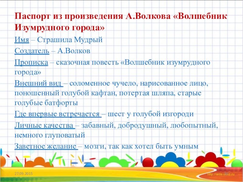 Слайд 50Паспорт из произведения А.Волкова «Волшебник Изумрудного города»