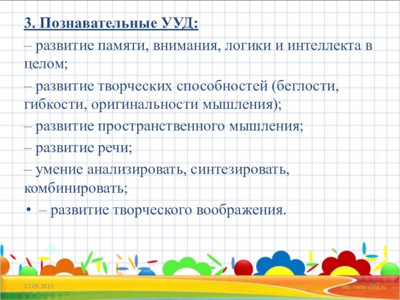 развитие творческих способностей (беглости, гибкости, оригинальности мышления);