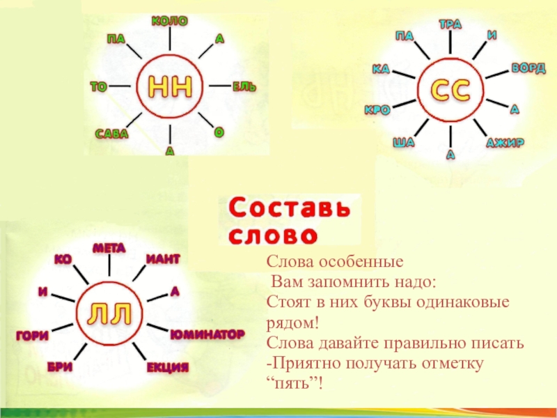 слова из предложенных букв. Буквы в новые слова можно брать только по порядку.