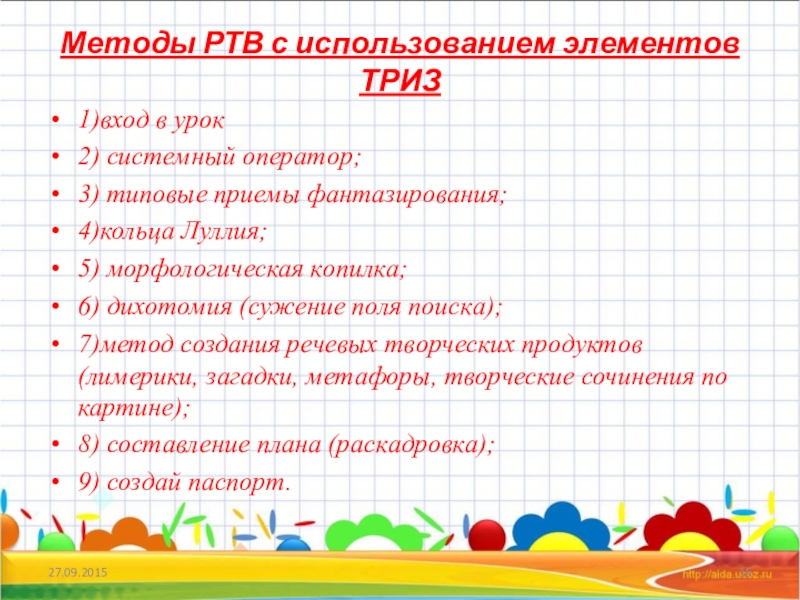 Слайд 15Методы РТВ с использованием элементов ТРИЗ