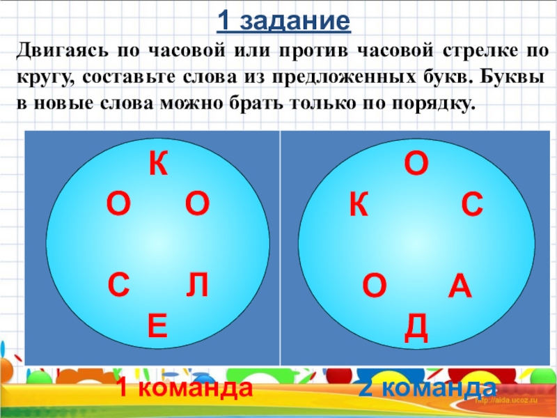 Двигаясь по часовой или против часовой стрелке по кругу, составьте