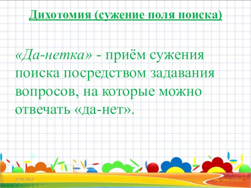 «Да-нетка» - приём сужения поиска посредством задавания вопросов,