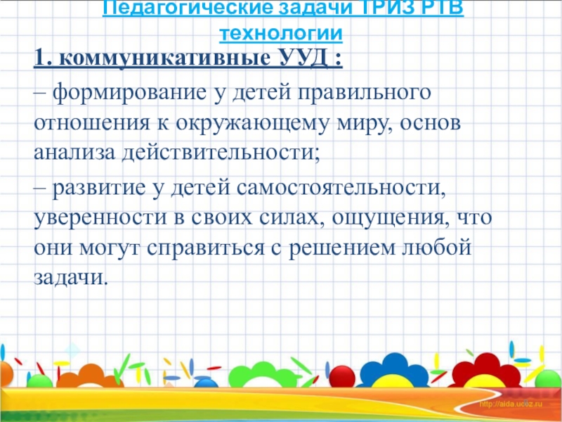 Слайд 8 Педагогические задачи ТРИЗ РТВ технологии