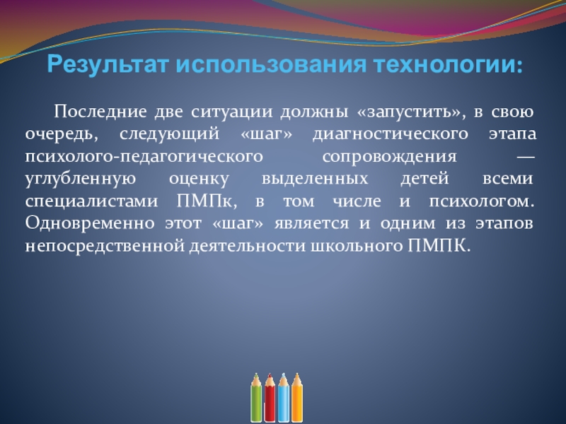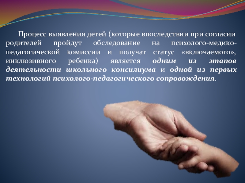психолого-медико-педагогической комиссии и получат статус «включаемого», инклюзивного ребенка) является одним из этапов деятельности школьного консилиума и одной из первых технологий психолого-педагогического сопровождения.
