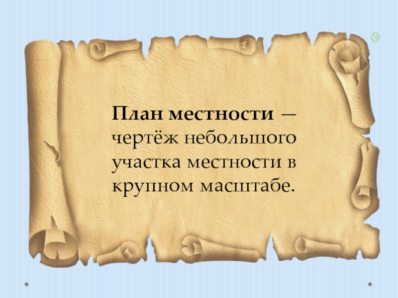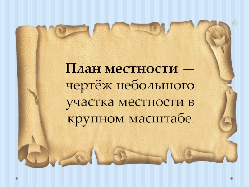 Слайд 9План местности — чертёж небольшого участка местности в крупном масштабе.