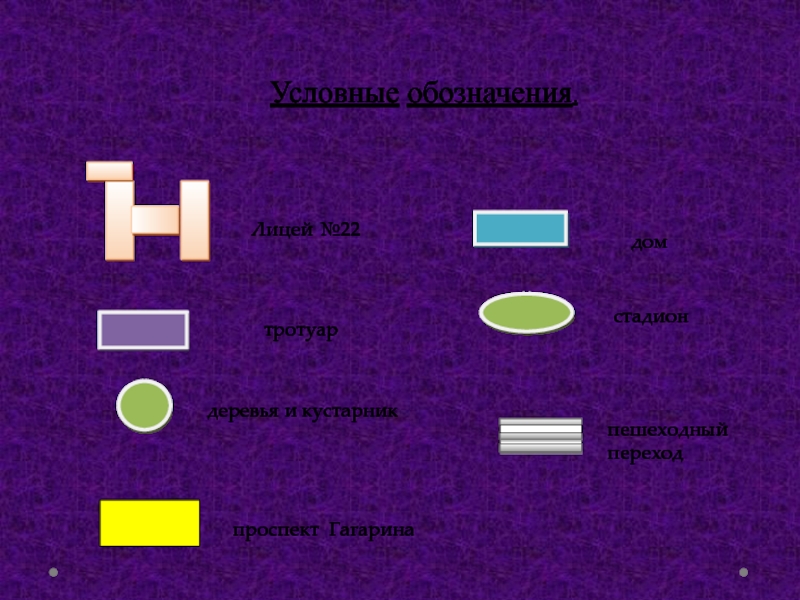Условные обозначения.стадионпешеходный переход домдеревья