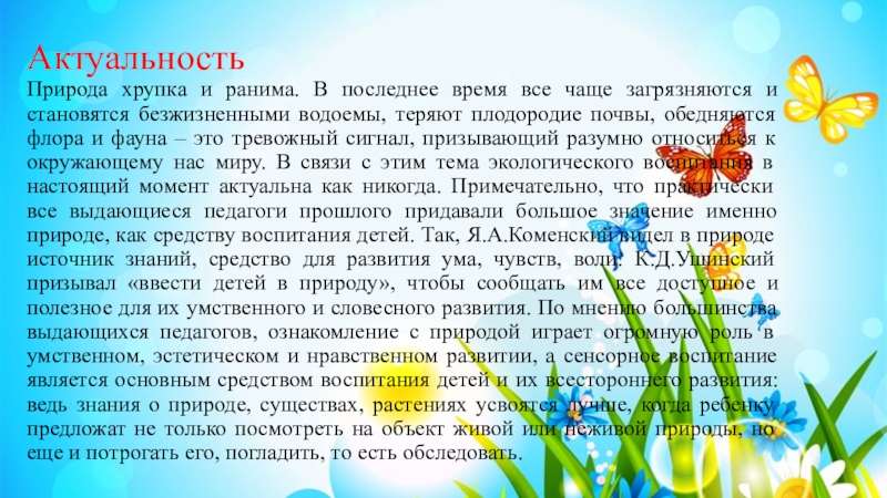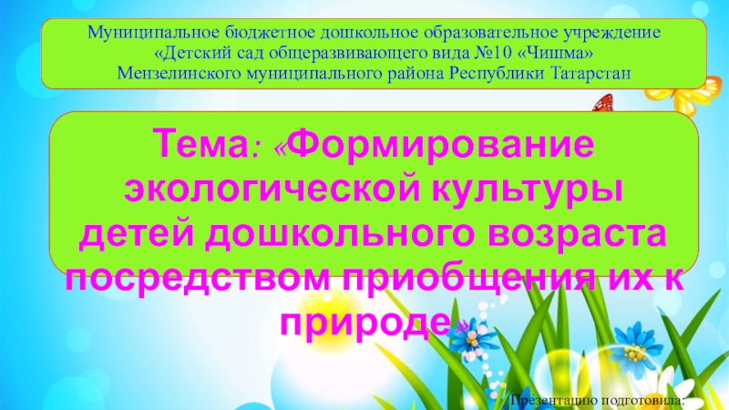 Тема: «Формирование экологической культуры детей дошкольного возраста посредством приобщения их к природе»